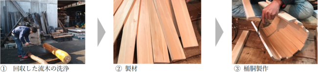 株式会社 天の技(本社:東京都大田区 社長:工藤裕)、株式会社 ドローンクリエイト(本社:島根県益田市、社長:大畑悦治)、株式会社 三島屋楽器店 福山工場(本社新潟県長岡市、社長:山田京一)の3社は、海岸で回収した流木から桶胴太鼓を試作しました。