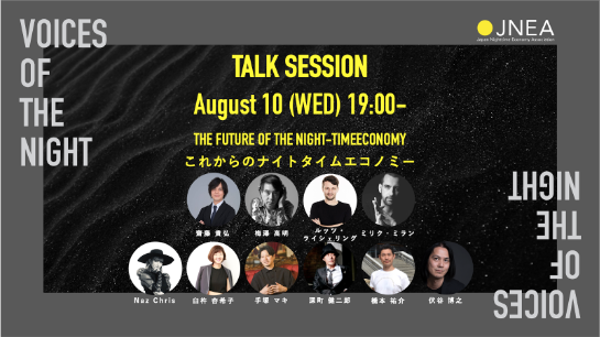 JNEAでは、ナイトタイムエコノミー推進のため、多様なステークホルダーが対話できる土壌をつくる『Voices Of The Night』を始動いたしました。