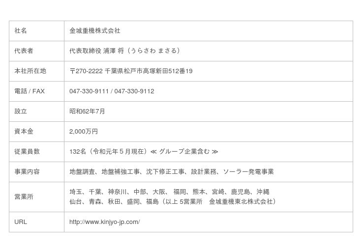 金城重機株式会社は昭和61年の創業以来、地盤調査と地盤補強工事を行ってまいりました。北は青森県八戸市、南は沖縄県浦添市まで、全国に15の営業所とグループ会社を配置。日本全国あらゆる地域において、地域に密着しながら事業を展開しています。お客様の役に立ち、お客様に喜ばれる仕事がモットーです。お客様第一主義を基本姿勢として、地域の皆様・地盤との共存共栄を図ります。