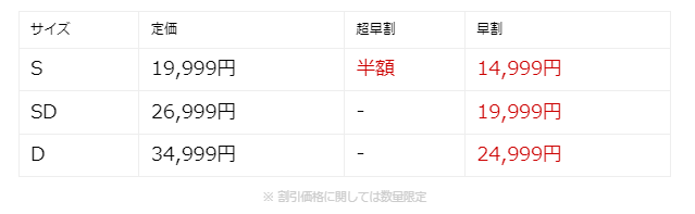 Release直後は「超早割価格・早割価格」でのご提供もご用意しております。