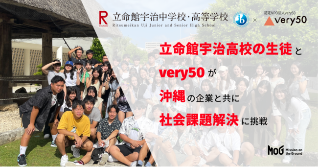 認定NPO法人very50(よみ:ベリー フィフティー、本部:東京都豊島区、代表理事:菅谷 亮介、以下very50)は、SDGs課題×経営課題への挑戦を通じて問題解決能力を養う日本初の高校生向けプログラム、「MoG(Mission on the Ground)」を、立命館宇治高等学校(よみ:りつめいかんうじこうとうがっこう、所在地:京都府宇治市、校長:HICKS Joseph、以下立命館宇治高校)と共に沖縄県で実施いたしました。