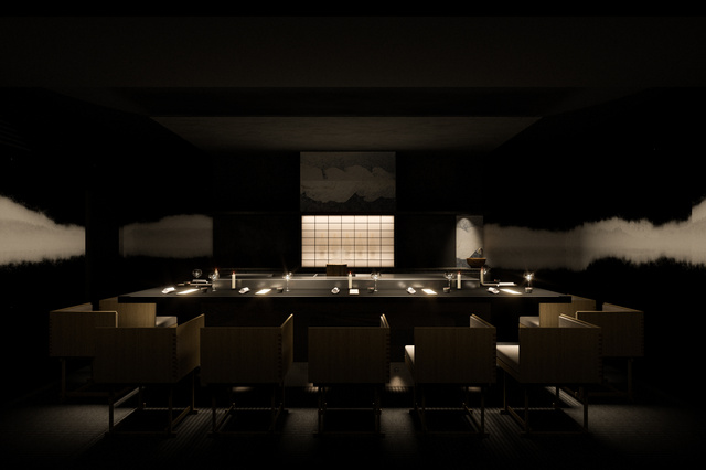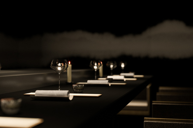 招待者のもとに現れる漆黒の巨大トラック。茶室のように身をかがめ中に入ると、まるで時空を超えた空間が広がる。限られた視界の中で感じる吉野杉の温かみや畳の感触。日常との境界を断つ事で、無垢な心で日本酒を味わい、自然と心地よく自身と向き合うことが出来る。未だかつてない魂が戯れる禁断の場所。