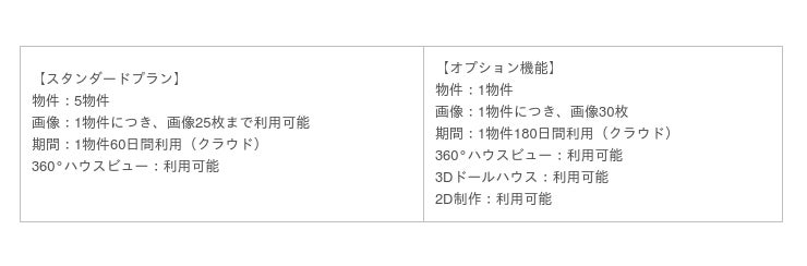 ※「3Dドールハウス」「2Dフロアプラン」「画像エンハンスメント」のオプション機能は1物件でセットになります。単体でのご利用はできません。
