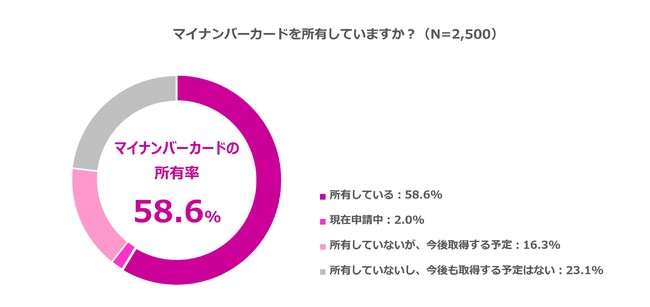 過半数の人(58.6%)がマイナンバーカードを所有している。