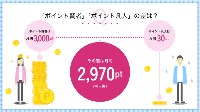 実際に、“ポイント賢者”は「月に3,000ポイント」、“ポイント凡人”は「月に30ポイント」