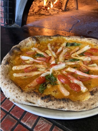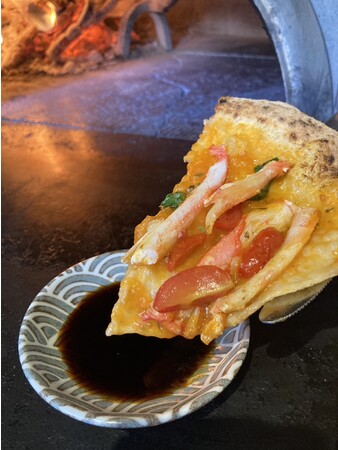 そのときに薪窯を担当した坂本シェフが焼き上げたのが、黄色のトマトソースにカニをのせたマリナーラ。ナポリピッツァの伝統と日本ならではの食材が生み出す革新的な味わいは、確かなクオリティとピッツァとしての完成度の高さで現地の審査員を唸らせました。