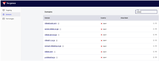 国内150万企業ドメインが導入・解約するWebテクノロジーを高い精度でトラッキングし、ICT企業のインサイドセールスを強力にサポートするデータサービス「テックジェンス」の提供が開始された。