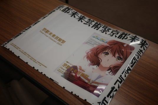 入場者には、非売品のバッグ式クリアファイルが配られます。アニメ「響け!ユーフォニアム」(原作:武田綾乃・宝島社文庫『響け!ユーフォニアム』シリーズ)は京都アニメーションが手掛けた大人気吹奏楽アニメシリーズ。北宇治高校吹奏楽部を舞台に、主人公・黄前久美子(おうまえ くみこ)が奮闘する青春ストーリー。 https://anime-eupho.com/