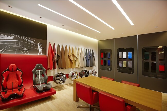 フェラーリ・ショールームはプロダクトの展示・販売のみならずお客様にプロダクトの特徴をご理解いただき、フェラーリならではのDNAをユニークな体験を通じてお伝えする中心的な場所でもあります。そこは、フェラーリブランドとお客様との出会いの場であり、コミュニティにお迎えする場といえます。そのため、「イノベーティブ」「オーセンティック」「ウェルカム」という3つの要素が取り入れられた空間デザインによる革新的なルック&フィールで潜在的な新規のお客様を惹きつけ、同時に既存のお客様にとっては心地よいプライベートな空間を提供いたします。