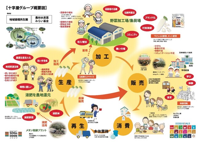 十字屋は、大正時代から真庭で米屋として創業し、この地で困った人の力になりたいという「お節介」な想いを理念とし、汚物処理や汚水処理といった真庭の環境を支えるインフラ事業をおこなっています。さらに、生ごみの再生事業や農業支援・高齢者支援、担い手育成などにも乗り出しました。そして生産から加工、販売、消費、再生という地域循環をつくり、真庭が抱えるさまざまな課題を地域で解決していこうという取り組みをおこなっています。2020年、その取り組みが評価され、県下で初めての「おかやまSDGsアワード2020」を受賞いたしました。
