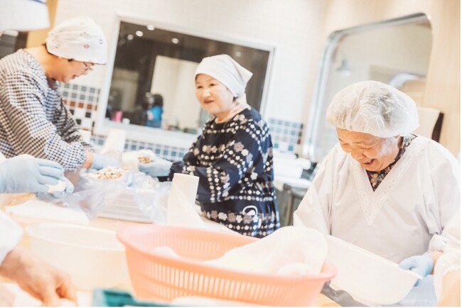加工場では、最高齢94歳、平均年齢82歳の真庭の元気でお節介なおばあちゃんたちが活躍しています。真庭あぐりガーデンを舞台に、真庭市やNPO法人など他団体と連携して取り組んでいるこの事業は、岡山大学病院や真庭市と高齢者の認知機能予防などの協働研究も行うなど、多くの関係を生み出しています。