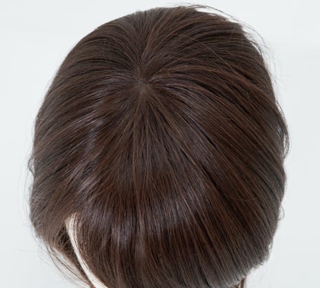 手植えで丁寧に仕上げられたつむじのため、ふんわり自然な分け目です。頭皮に近いカラーのベースネットを使用しているので心配な地肌の透け感もカバーします。