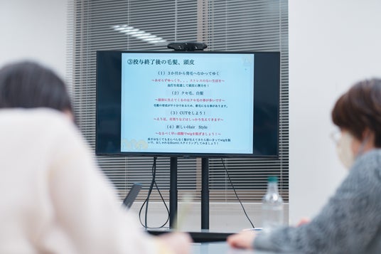 治療による脱毛後に生えてくる毛髪は、髪質が変化することがあります。そのため、元の髪質に近づけることを目指すよりも、新しい髪質とどう向き合い、受け入れていくかのプロセスを考えていただく内容となります。