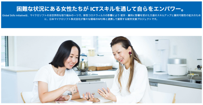 「ひとり親TECHエンパワメントプログラム」は Microsoft の「Global Skills Initiative」の一環で、「女性の支援現場に、ICT学習を通じて成長する機会をつくり、女性の成長と仕事への可能性を最大化する」ことをめざして、日本マイクロソフト株式会社と女性支援に取り組むNPO等が協働する取り組みです。 志を持つシングルマザーのために、ICTスキルやプレゼン、スピーチ、リーダーシップなど就労につながるスキルを身につけるプログラムを開発しました。 NPO法人シングルマザーズシスターフッドが実施した1期生が2021年8月に終了し、現在2期生が研修中。3期生は全国5団体で3月に同時スタートします。