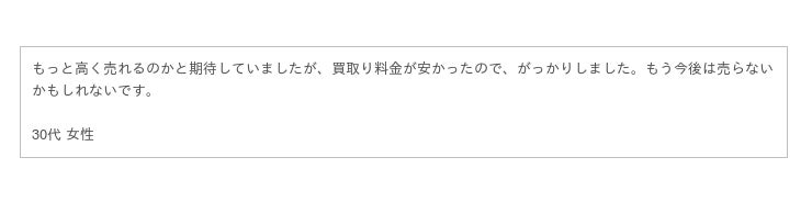 不満に感じた理由で多かったものは「買取金額の安さ」が圧倒的に多く、店に持ち込んだ際の査定時間の長さに不満を感じた声も見られました。