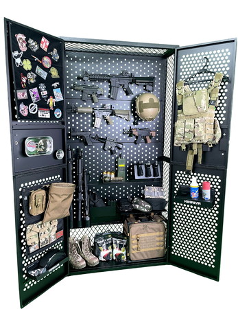 必死になって集めた 大切なコレクション 家に散らかっていませんか? 長物からハンドガン、ベスト ヘルメット・シューズなど 様々な装備品をこれ1台に収納 すべてを収納できるため、 サバゲーの準備もスムーズに 前日の慌ただしさからも 解放されます。
