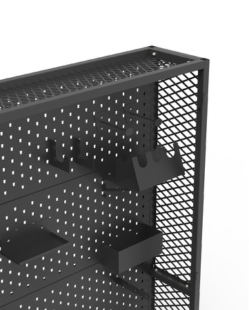 フレームはすべてメタルで、 さらに専用の パンチングボードを採用しているので、 銃器や装備品が落ちる心配はありません。 パーツは取外し可能 配置を自由にカスタムすることができます。
