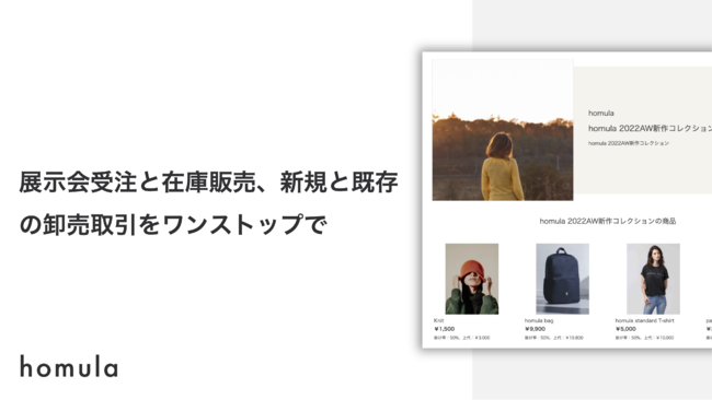 ら既存顧客バイヤー、展示会受注から在庫販売までhomula上でワンストップで卸売を行うことが可能になりました。