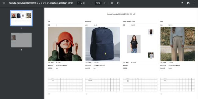 homula上で、簡単にコレクションごとのオンライン展示会ページ(webカタログ)の作成、既存顧客の招待、ラインシート出力、受注集計、決済まで簡単に行うことが可能です。作成した展示会ページを案内する一斉メール配信(セグメント配信も可能)もでき、開封やクリック、ページ閲覧数など顧客反応もアナリティクス機能で簡単に確認することができます。homulaでは会員のバイヤーからの展示会受注や在庫販売も行えるので、新規バイヤーか