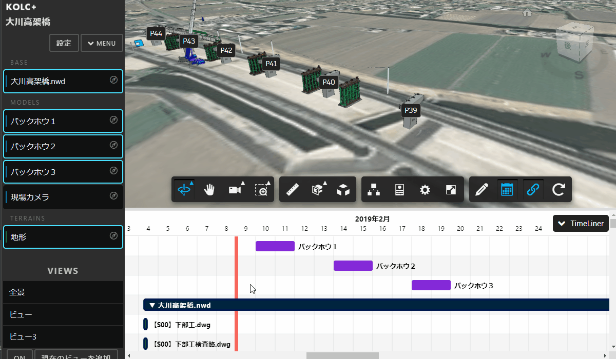 KOLC+上で任意の3Dモデルにタイムライナー設定(開始日、終了日、タスクタイプなど)を追加できるようになりました。これにより、ファイル単位であれば Autodesk Navisworks(R) を使わずにクラウド上で4Dシミュレーションを作成可能です。