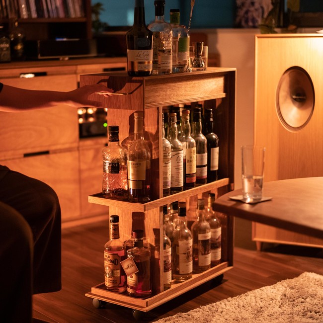 普通の棚にボトルを収納しようとすると、どうしても奥のボトルが見えにくく取り出しにくいもの。バーシェルフはひな壇タイプで、奥のボトルを見やすく取り出しやすい機能的なデザインとなっています。また奥のボトルが見えることで、まるでバーの様に美しくお気に入りのコレクションをお部屋に飾ることができます。
