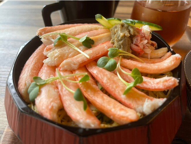 蟹まぶしはカニの味はもちろん、濃厚な蟹味噌と錦糸卵・胡瓜と味わうことで味の変化も楽しめます。