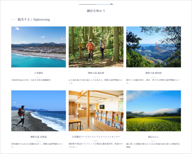 人口減少課題に直面する町では、地域振興のために観光にも力をいれています。七里御浜や熊野古道などの観光スポット・飲食店・土産屋などの情報をウェブ上に整備することで、旅行者が訪れやすい環境を整えます。