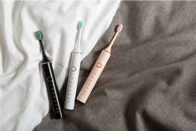電動歯ブラシ本体は、スタイリッシュな洗面所にも馴染むシンプルなデザインとなり、カラーバリエーションは、白・黒・ピンクの3色展開となっております。また、ブラシの硬さも2種類から選ぶことができ、自分好みの歯ブラシにすることができます。