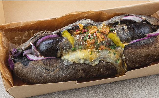 オススメは、沖縄の高級ブランド豚『キビまる豚』を贅沢に使った、ホットドック3種。なかでも、イカ墨やハーブ、セミドライトマトを練りこんだ自家製ソーセージに、パンにもイカ墨を使った、インパクト抜群の黒いホットドック『BLACK Hot dog』¥1,200(税込)は、ボリューム満点でお酒にも合うホットドックです。