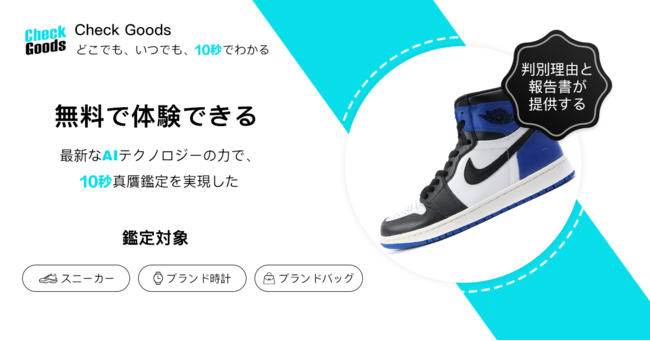 株式会社超越(本社:新宿区西新宿3丁目)は2021年7月に、特有な技術により、完全AI真偽鑑定サービスを提供し始めました。リユース業界の偽物問題を解決するために、国内において、唯一かつ最新な完全AI鑑定技術を利用し、10秒で済むAI真偽鑑定サービス「CheckGoods」を提供しました。現在の対象商品はスニーカーを始め、ブランドバッグと時計も全部鑑定できます。また、リリース記念として、期間限定に無料鑑定キャンペーンを開催しています。