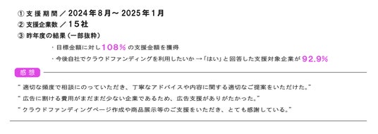今回の支援対象企業が決定し、順次プロジェクト掲載がスタートします。是非この取り組みにご注目ください。