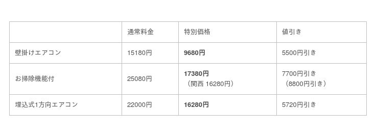 エアコン1台のクリーニング料金を通常よりお得な特別価格でご提供いたします。