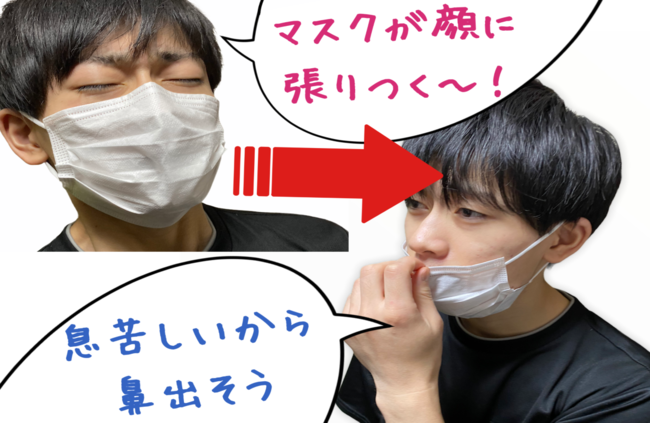 1: マスクと顔のわずかな隙間を有効活用し、 不快感なく空間を維持