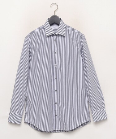 約3mm等間隔のロンドンストライプシャツ。やや細めのメリハリのあるストライプが、コーディネートにシャープで力強いアクセントを加えます。