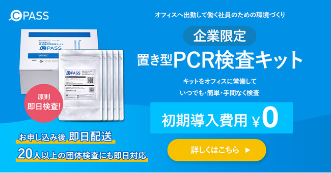 株式会社FUTURE GATES(本社:東京都新宿区、代表取締役 坂元伸一)は、ウィズコロナ時代に安心して働ける環境を実現することを目的に、オフィス置き型PCR検査キットサービス「CPASS」(シーパス)を2月1日(火)より提供開始しており、3月上旬からは全国展開する予定です。