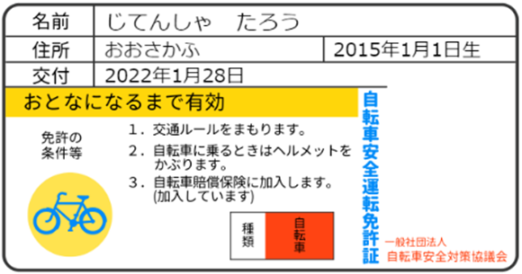 4.自転車安全運転免許証の発行することができます。
