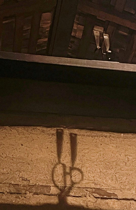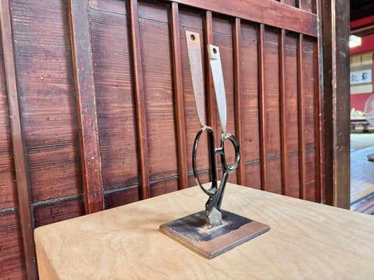 <作品名>ハーフカット<作家名> ビル・ウッドロー <制作年>1994年<素材>鉄・ハサミ(坂野充学・ARTS&STAY所蔵)