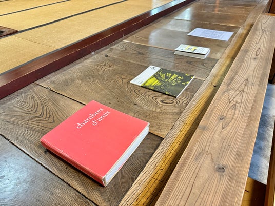 展示会場では鶴来現代美術祭や日本の芸術祭の原型となったともいえる展覧会「シャンブル ・ダミ」展の図録や、鶴来現代美術祭アーカイブのメンバー・キュレーターの鷲田めるろによる論文「鶴来現代美術祭における地域と伝統」なども閲覧できる。