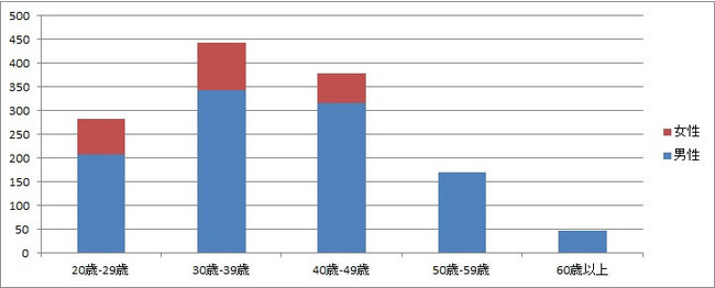男性は30代から40代からの回答が多く、女性は30代の方から多く回答を頂きました。なお、女性の50代以上の方についてはもともとの母数が少なく、回答数はゼロとなっております。