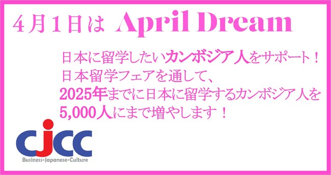 当組織は、4月1日を夢を発信する日にしようとするApril Dreamに賛同しています。このプレスリリースは「カンボジア日本人材開発センター(CJCC)」の夢です。