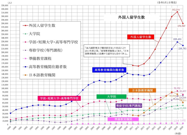 日本政府は、減少する日本の労働人口を補うために、外国人人材の受け入れを1つのテーマとしています。それに伴い、優秀な留学生を日本に呼び込むために「留学生30万人計画」を推進しています。独立行政法人日本学生支援機構(JASSO)が実施した「2020年度外国人留学生在籍状況調査結果」によると、2020年は新型コロナウイルス感染症による影響で外国人留学生数は減少しましたが、奨学金制度、卒業後のフォローアップ等の国による取り組みや受け入れ態勢の強化、生活支援等の大学による取り組みのおかげで、2019年までは外国人留学生数は毎年増加を続けていました。また、カンボジア人留学生数も2013年の369名から2019年には751名に増加し、6年間で