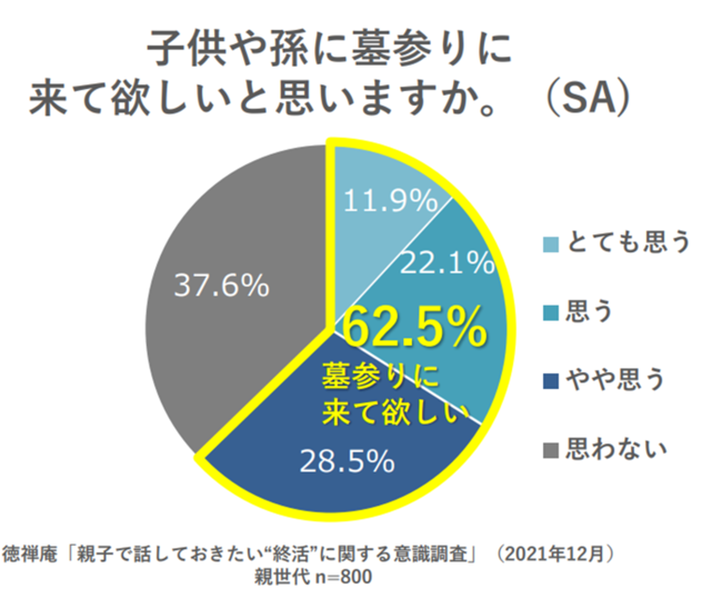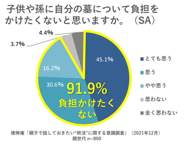 株式会社徳禅庵(本社:東京都世田谷区、代表取締役社長:海庵 誠二)は、日本の文化である先祖供養、お墓参りの新しいカタチとして、家族が不便なくお墓参りに来やすいようにと考えている方や、将来どこに住むことになるかわからない方などのお墓の悩みを解決する、何度でも納骨堂に遺骨を移転可能な『納骨堂転葬サービス』を展開しています。緊急事態宣言も明け、帰省をする人が増加するであろう年末年始に向け、親子で話しておきたい“終活”について、意識調査を行いました。