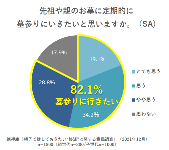 先祖や親のお墓参りに定期的に行きたい人が82.1%