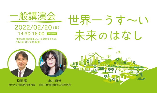 東京大学物性研究所(千葉県柏市)は、最先端の研究をお伝えする講演会を2022年2月20日(日)にオンライン開催致します。