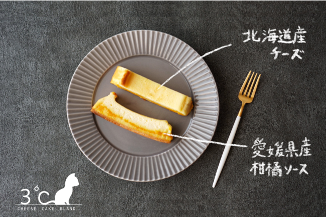 チーズケーキ3℃~サンドは愛媛県産柑橘×北海道産チーズの絶品チーズケーキです。