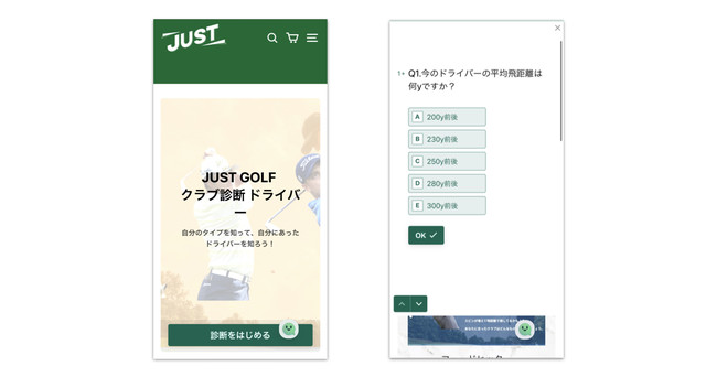 現在、コロナによって急激に若年層のゴルフ人口が増えました。しかし、初心者の多くの方は膨大にあるクラブの中から自分にあったクラブを探すことが困難で、自分のフォームとクラブのミスマッチが起きています。そこでクラブの知識やメイカーのモデルの知識がなくても、簡単に自分にあったクラブが分かる「JUSTGOLF クラブ診断」を開発しました。