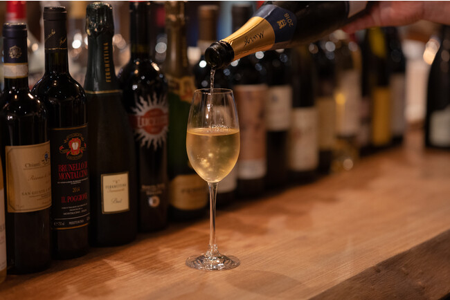 お料理に合わせるのは世界各国の厳選されたワインたち。バラエティー豊かなラインナップでお料理をより一層ひきたてます。また、たくさんあり過ぎて決められないお客様には、お食事にあったワインをスタッフがチョイス。グラスでも楽しんでいただけるのでお気軽にお声かけください。