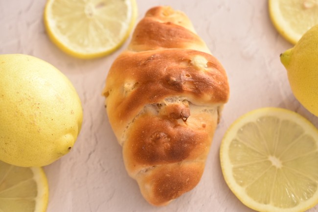 シンプルな形のバターロールも「パーカーハウスバターロール」(180円)「レーズンのバターロール」(220円)に、カカオを練り込んだ生地にチョコチップが入った「Wショコラバターロール」(240円)が加わり3種類をご用意しています。さらにこの夏の新メニューとして「レモンとクルミのバターロール」が登場しました。シチリアレモンのレモンピールと果汁とクルミを練り込んだバターロールは、爽やかなレモンの香りとクルミの食感が楽しめます。レモンの爽やかさはソフトクリームとの相性も抜群です。