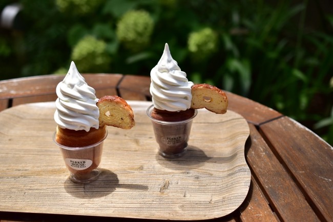 開発のきっかけは、アラサー男子の夏の思い出の味「遊園地や旅行先で食べたご当地ソフトクリーム」。暑い季節に嬉しいひんやり感、口に広がるなめらかでミルキーな味わい、溶けないうちにと急いで食べた記憶。そんなドキドキ・ワクワク感をバターロールに乗せてお届けします。バターロールの切れ端とバターロールのラスクを添えていますのでクリームをすくってお楽しみいただけます。PARKER HOUSE BUTTER ROLLのバターロールならではのバターの香り豊かなサクっとした食感とソフトクリームのミルキーでクリーミーな食感のコントラストや、バターとクリームのリッチな味わいの相乗効果をお楽しみください。