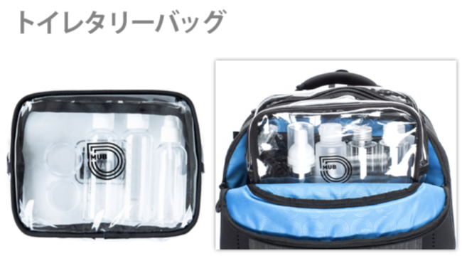 それぞれのバッグに、トイレタリーバッグが付属します。